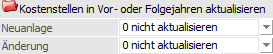 Kostenarten in Vor- oder Folgejahren aktualisieren