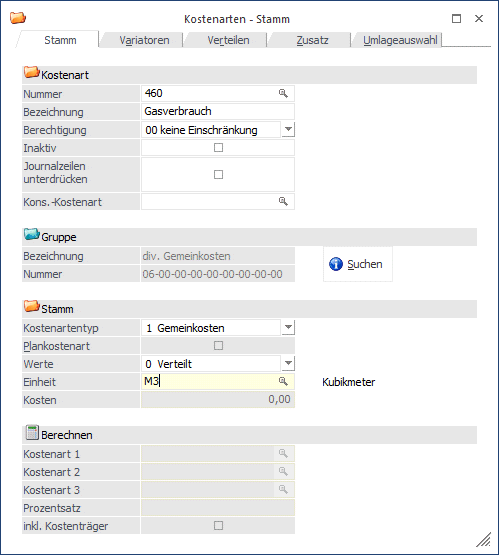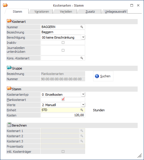 Beim Berechnen einer Kostenart kann auch optional der