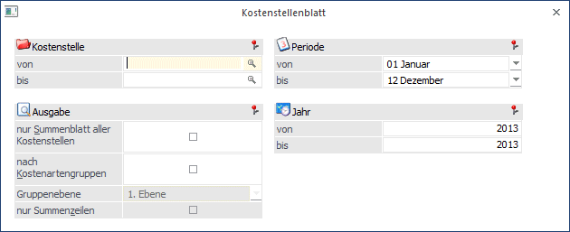 Einschränkung der Perioden für die das Kostenstellenblatt ausgegeben werden soll.