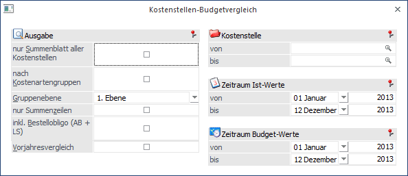 Um einen Kostenstellen-Budgetvergleich durchzuführen, rufen Sie den Menüpunkt