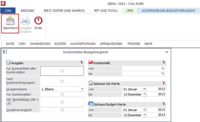 In der Reportdefinition kann die Auswertung des Kostenstellen-Budgetvergleichs nur gespeichert werden.