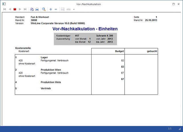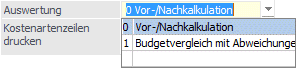 Vor-/Nachkalkulation - hier werden die beiden Auswertungen auf einem Blatt einander gegenübergestellt