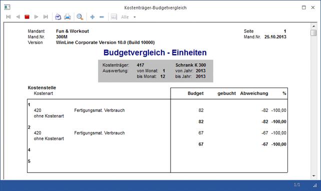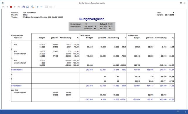 Im Budgetvergleich sind pro Kostenträger in der Teilkostenrechnung als auch in der Vollkostenrechnung die absolute Abweichung (Beträge) als auch die relative Abweichung (Prozent) gegeben. Die Abweichung betrifft den Unterschied zwischen Plan- und Istwerten.