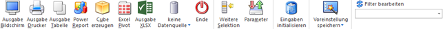 Der Button "Datenquelle verwenden" wird nur angeboten, wenn für diesen Bereich (bezogen auf den aktuellen Benutzer / Mandanten) zumindest eine private oder öffentliche Datenquelle existiert. Des Weiteren stehen die Ausgabevarianten "Ausgabe Bildschirm", "Ausgabe Drucker" und "Ausgabe Tabelle" nicht zur Verfügung.