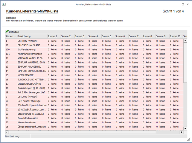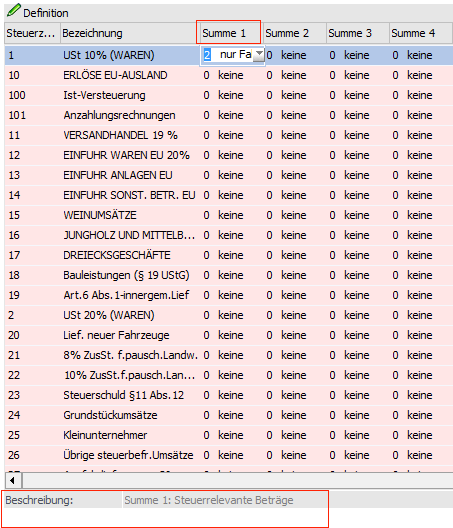 Im ersten Schritt wird pro Steuerzeile und Summe festgelegt, welche Werte mitspielen sollen.