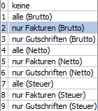 Im Listenfeld stehen folgende Werte zur Verfügung: