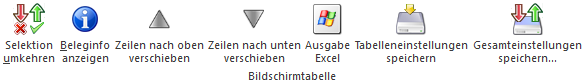 Die Spalten einer Tabelle können grundsätzlich an beliebige Positionen verschoben, bzw. in der Breite entsprechend angepasst werden. Durch Anwahl des Buttons "Tabelleneinstellungen speichern" werden die Einstellungen benutzerspezifisch gespeichert und bei dem nächsten Aufruf des Programmpunktes wieder vorgeschlagen.