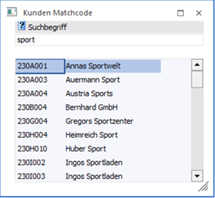 Durch Drücken der ESC-Taste wird das Fenster geschlossen, es wird kein Kunde in den Beleg übernommen.