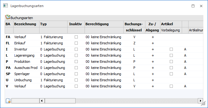 In dem Fenster "Lagerbuchungsarten", welches über…
