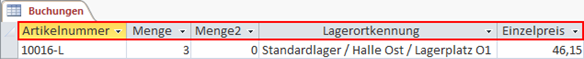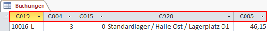 Bei der Erstellung von neuen Tabellen (bei Angabe einer nicht existierenden Datenbank während des Exports) werden die SQL-Spalten mit jenen Nummern der externen Lagerbuchhaltung angelegt (der allgemeine Aufbau der SQL-Tabelle kann dem Kapitel Externe Lagerbuchung - Typ "Lagerbuchung" entnommen werden).