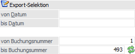 An dieser Stelle können die zu exportierenden Datensätze anhand der Buchungsnummer selektiert werden.