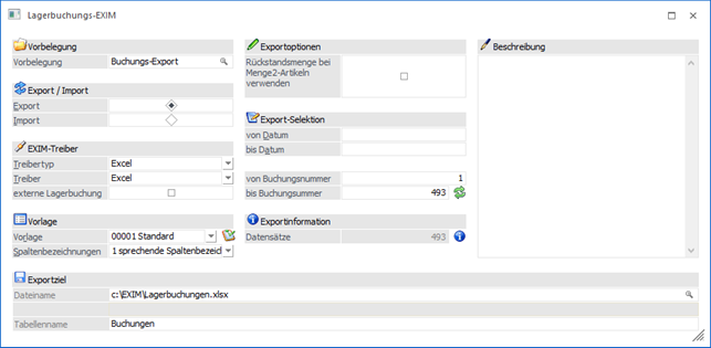 ü Im Menüpunkt Externe Lagerbuchung die EXIM-Vorlage anlegen.