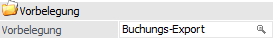 Über die Vorbelegung können die Einstellungen eines Ex- bzw. Importvorgangs gespeichert werden. Wurde bereits eine Vorbelegung definiert, kann diese durch Drücken der F9-Taste gesucht werden. Wurde noch keine Vorbelegung definiert, kann diese durch eine Eingabe im Feld "Vorbelegung" angelegt werden. Wurden alle Eingaben durchgeführt, wird die Vorbelegung durch Drücken der F5-Taste bzw. des Buttons "Ok" gespeichert.