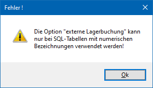 Wird diese Option aktiviert, so können direkt die SQL-Tabellen, welche im Menüpunkt Externe Lagerbuchung erzeugt wurden, verwendet werden. Die ebenfalls benötigte Vorlage kann in der externen Lagerbuchhaltung mit Hilfe Buttons "Vorlage erzeugen" generiert werden.
