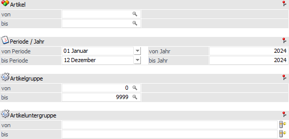 Ø Artikelgruppe von / bis