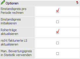 Der Einstandspreis kann wahlweise nach Periode oder über alle Zugänge kumuliert berechnet werden.