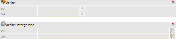 Ø Artikeluntergruppe von / bis