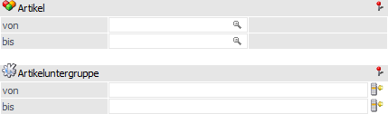 An dieser Stelle kann nach den Artikeln eingeschränkt werden, welche ausgewertet werden sollen. Bleiben die Felder leer, so werden alle Artikel in die Auswertung einbezogen.