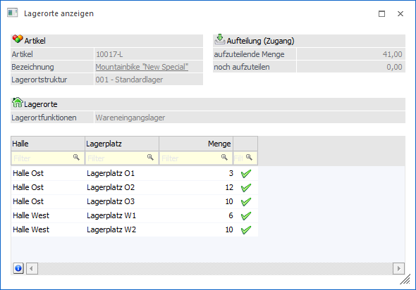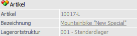 Hier wird die Lagerortstruktur des Artikels angezeigt.