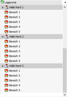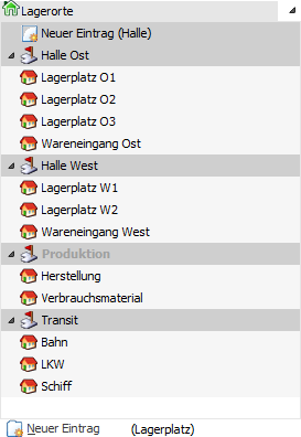 Im Lagerortbaum werden die angelegten Lagerorte dargestellt. Zusätzlich können neue Orte definiert werden.
