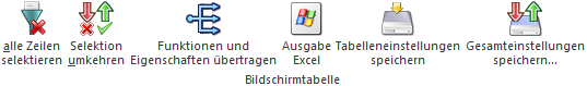 Alle Funktionen und Eigenschaften der Tabelle werden selektiert.