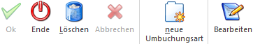 Bei Anwahl dieses Buttons wird der "Bearbeitungsmodus" aktiviert, d.h. bestehende Umbuchungsarten können geändert werden.