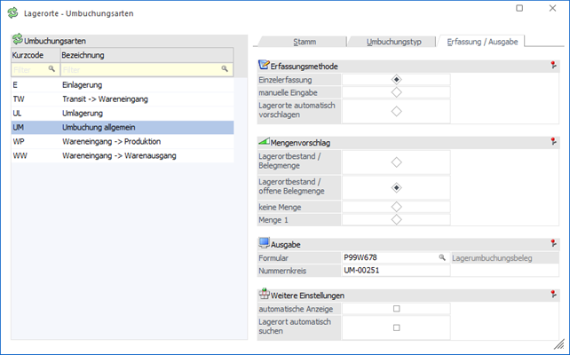 Die Art der Erfassungsmethode kann im Programm "Lagerorte - Umbuchung" jederzeit übersteuert werden.