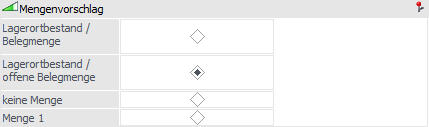 An dieser Stelle kann mit Hilfe eines Radiobuttons eingestellt werden, welche Menge zur Umbuchung vorgeschlagen werden soll.