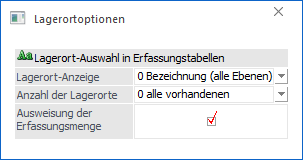 Durch Aktivierung der Option "Ausweisung der Erfassungsmenge" wird zusätzlich zum Text des Lagerorts auch die jeweilige Erfassungsmenge ausgewiesen.