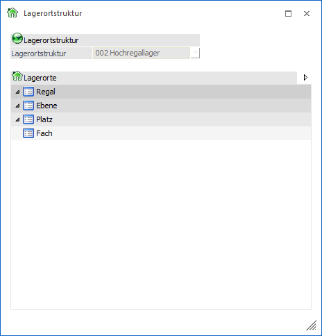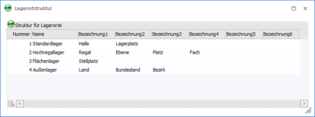 In der Tabelle "Struktur für Lagerorte" werden die Lagerortstrukturen erfasst.