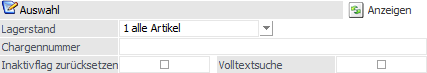 Aus der Auswahlliste kann gewählt werden, ob "alle Artikel" oder "nur Artikel mit Lagerstand > 0" angezeigt werden sollen.