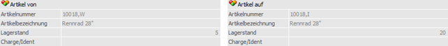 In diesem Bereich werden die Artikelinformationen zu der aktivierten (markierten) Umbuchungszeile dargestellt.