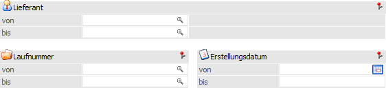 Mit Hilfe dieser Eingabefelder kann auf die bereits existierenden Laufnummern (nicht gerechnet / gedruckte Belege) eingeschränkt werden.