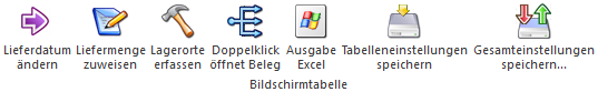 An dieser Stelle wird das Lieferdatum des Artikels gemäß Kundenauftrag angezeigt und kann editiert werden. Findet eine manuelle Änderung statt, so kann diese mit Hilfe des Tabellenbuttons "geändertes Datum speichern" in die Belegzeile des Kundenauftrags zurückgeschrieben werden.