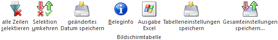 Im Gegensatz zu "Tabelleneinstellungen speichern" können mit "Gesamteinstellungen speichern" mehrere Tabellenaufbauten gespeichert und nach Wunsch geladen werden. Zusätzlich werden Sonderfunktionen der Tabelle (z.B. "Spalte gruppieren") ebenfalls bei der Speicherung bedacht.