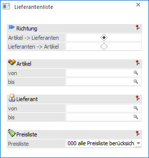 Hier kann eine Selektion auf die Lieferanten erfolgen.