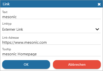 In dem Eingabefeld "Tooltip" kann ein optionaler Beschreibungstext für den Link hinterlegt werden. Dieser wird bei einem Mouseover automatisch angezeigt.