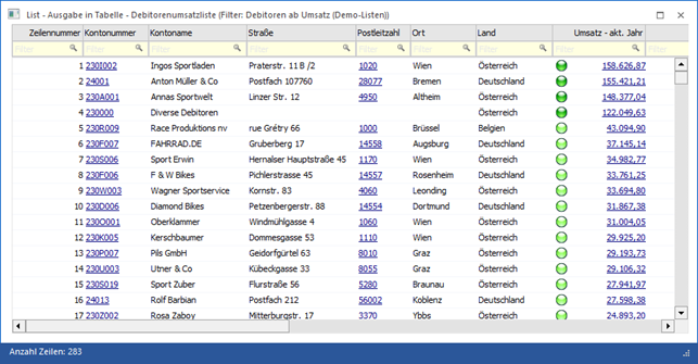 In diesem Fenster werden die Daten angezeigt, welche aus dem List-Assistenten mit der Option "Ausgabe Tabelle" erstellt wurden.