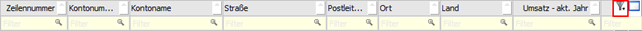 Durch Anwahl des Hauptfilter-Symbols, welches zu sehen ist wenn der Mauszeiger auf die Überschriftszeile gelegt wird, kann eine Suchzeile aktiviert werden. In dieser Suchzeile kann durch Eingabe eines Begriffs in jeder Spalte schnell und zielgenau gesucht werden.
