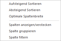 Über die Auswahl "Aufsteigend Sortieren" bzw. "Absteigend Sortieren" kann der Inhalt der Spalte sortiert werden.