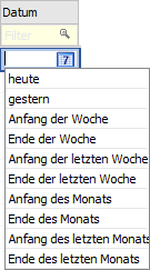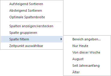Bei Spalten mit einem Datumsinhalt wird zusätzlich ein Untermenü mit folgenden Einträgen angeboten: