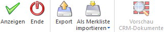 Handelt es sich bei den Daten der Tabelle um CRM-Aktionen oder CRM-Fälle (Listentyp "16 - CRM Workflow", "17 - CRM Aktionen" bzw. "18 - CRM Workflow und Aktionen"), so steht der Button "Vorschau CRM-Dokumente" zur Verfügung. Durch Aktivierung des Buttons werden die CRM-Dokumente des markierten Eintrags in der Dokumenten-Vorschau angezeigt.
