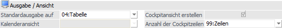Aus der Auswahlbox kann gewählt werden, wie die Ausgabe der Liste aus dem Cockpit heraus erfolgen soll. Dabei stehen die folgenden Optionen zur Verfügung: