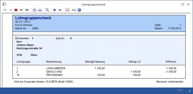 kann eine Prüfung zwischen erfassten und abgerechneten Lohngruppenwerten erfolgen.