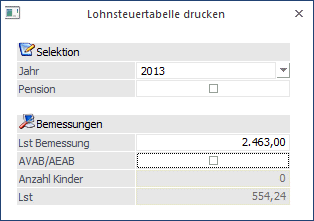Aus der Auswahllistbox kann das Jahr gewählt werden, für das die Lohnsteuer berechnet werden soll.