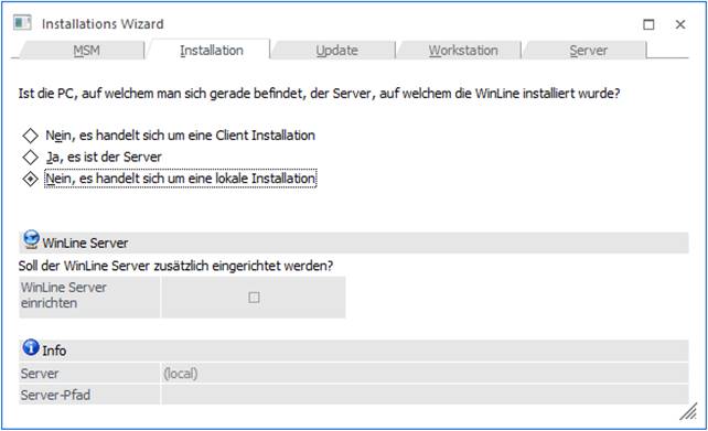Die lokale Installation wird dann verwendet, wenn das Programm nur auf einem PC eingesetzt wird. Das ist auch der Standardzustand, wenn das CWLSetup fertig ausgeführt wurde.