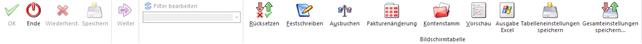 Steht der Focus auf der Kontenzeile, stehen wie bisher alle Buttons zur Bearbeitung zur Verfügung, wenn für das Konto noch nicht gedruckte Fakturen vorhanden sind. Ist der Focus in einer Fakturenzeile, stehen die Buttons "Rücksetzen" und "Festschreiben" zur Verfügung und die ausgewählte Aktion wird nur für die selektierte Faktura durchgeführt.