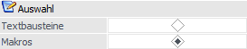 Je nachdem von wo der Matchcode aufgerufen wird, kann an dieser Stelle definiert werden, ob nach einem Textbaustein (= reiner Text) oder einem Makro (= rechnender Textbaustein) gesucht werden soll.