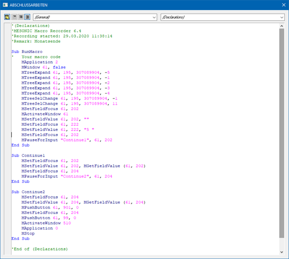 Aufzeichnung in einem separaten Fenster in Form von VB-Script angezeigt.