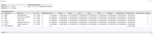 vorhandenem Preis auf die Makroartikelzeilen aufgeteilt.